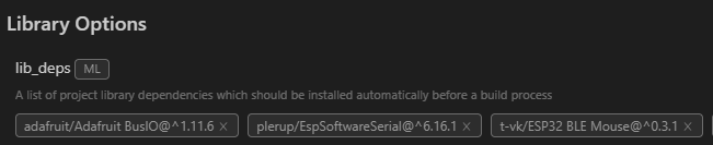 일반 아두이노 IDE 사용자의 경우 해당 라이브러리들을 검색해 설치하면 될 것이다. 추가로 softwareserial.h는 ESP32 전용이 존재하고 BLE Mouse 라이브러리는 아래 링크에서 다운로드할 수 있다.
