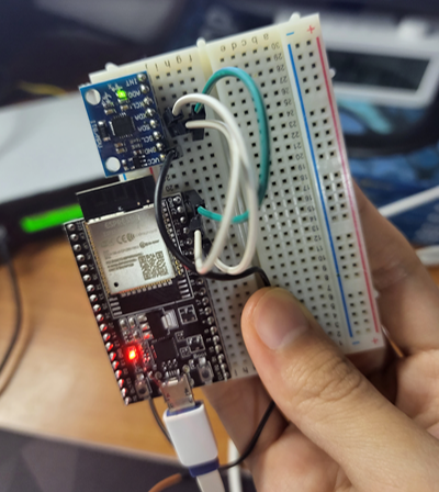이제 아래와 같이 회로를 구성한다. (필자는 그림과 좀 달리 VCC를 5V 핀에 연결했다.) 기존 에어마우스 제작 글을 참고하면 좋다.